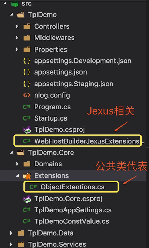该有的公共类,里面也都包含了,好比宇内分享的那个WebHostBuilderJexusExtensions。