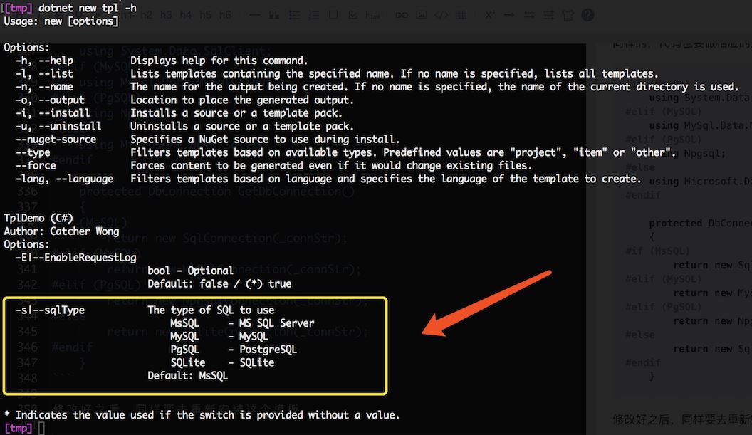 dotnet new tpl -h