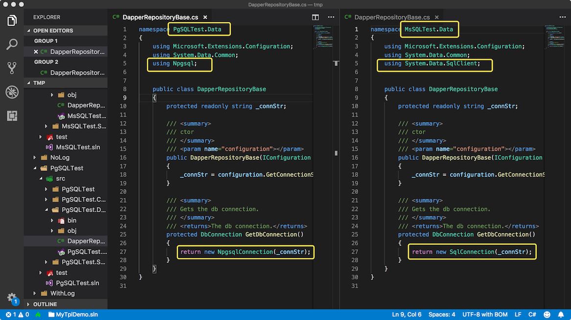 dotnet new tpl -n MsSQLTest -s MsSQL dotnet new tpl -n PgSQLTest -s PgSQL