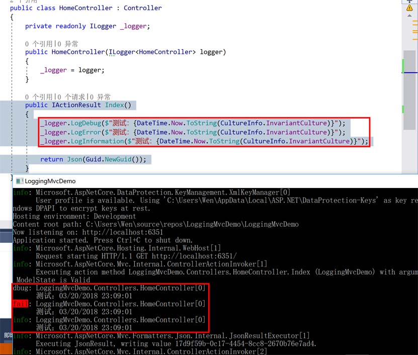 .Net Core学习教程之在Mvc中简单的使用日志组件