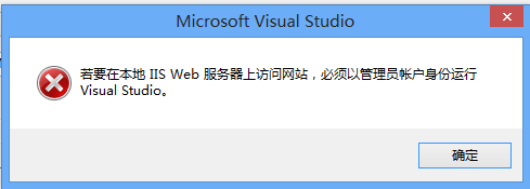 一、首先,以管理员身份运行VisualStudio,否则在修改项目属性时将弹出如下对话框,阻止我们修改服务器为本地IIS。
