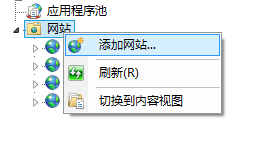 打开本地IIS。如何在Win8上安装IIS的方法,请自行查阅。右键网站、添加网站,如图: