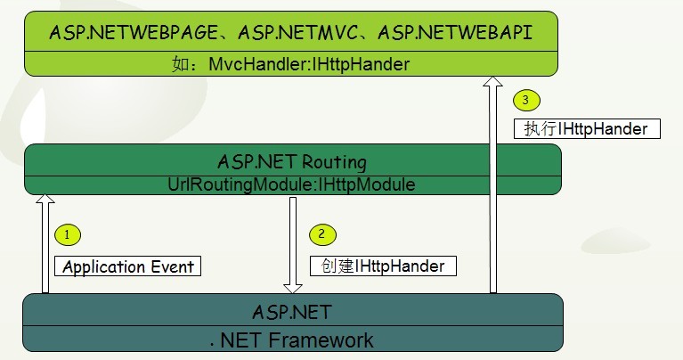 UrlRoutingModule对象通过RouteData路由数据对象获取IRouteHander接口,然后通过IRouteHander接口获取最终的IHttpHander接口;