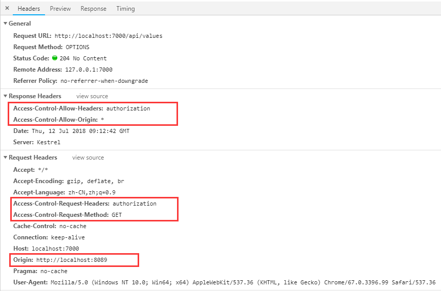 当浏览器判断为非简单请求后,会发送两次请求,首先浏览器会自动发送一个请求方式为options的请求,并在请求头中