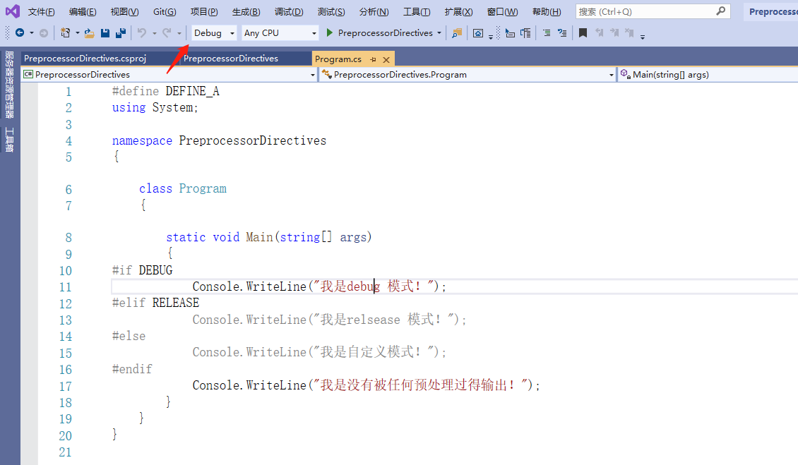 当C#编译器找到一条预处理指令#if,最后找到一条指令时,#endif仅在定义了指定符号的情况下,编译器才会在这些指令之间编译代码。与C和C ++不同,您不能将数字值分配给符号。#if C#中的语句为布尔型,仅测试符号是否已定义。