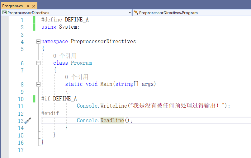 Console.WriteLine("我是没有被任何预处理过得输出!");
