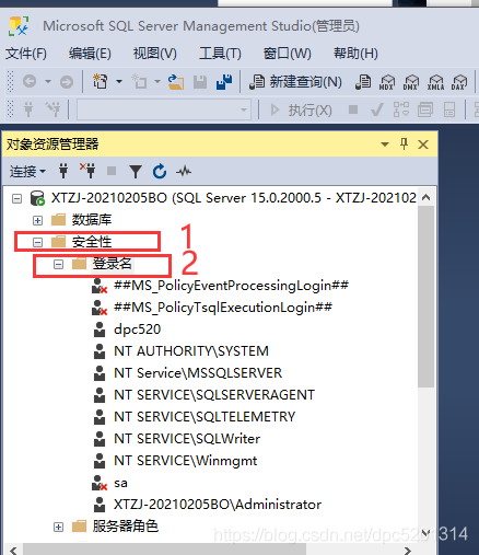 1.下载后打开选择登录:windows身份验证