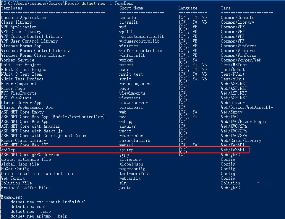 可以看到当前dotnet中已经提供了很多模板项目,那么如何根据项目开发的积累内容通过dotnet cli创建一个自己的项目来提升开发效率呢?