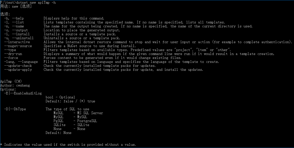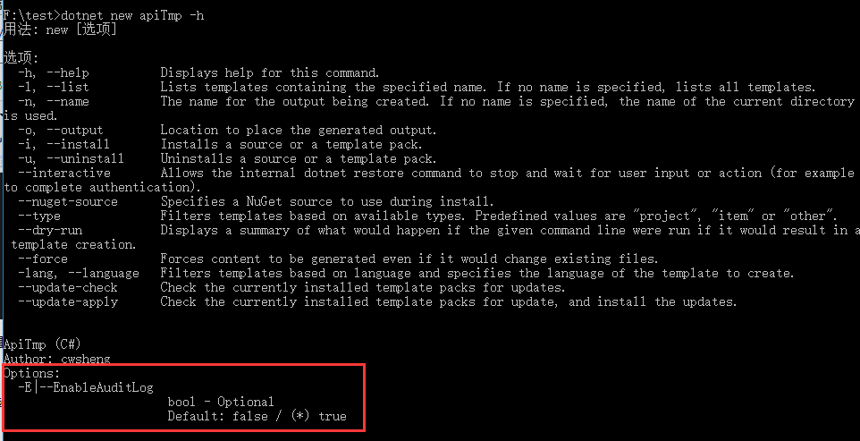 接下来进入项目目录,将这个模板安装到cli中。使用dotnet new -i 进行模板的安装。