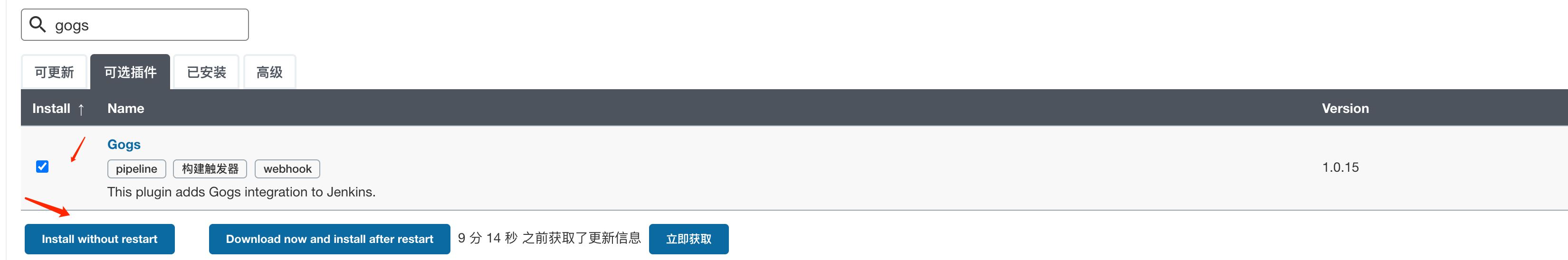 结束后创建管理账号登录即可,进入系统管理,选择插件管理,搜索gogs插件后安装。