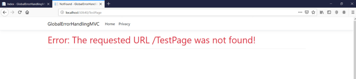 如果你尝试打开一个不存在的页面, 会自动跳转到 errorcontroller.notfound 所包装的 404 描述信息。