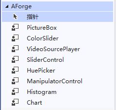 4、在工具箱中添加aforge.controls控件:先在工具箱中(单击右键)添加新的选项卡,命名为aforge;然后把release文件夹下的aforge.controls.dll文件拖到aforge中,aforge将添加新的控件,效果如下图: