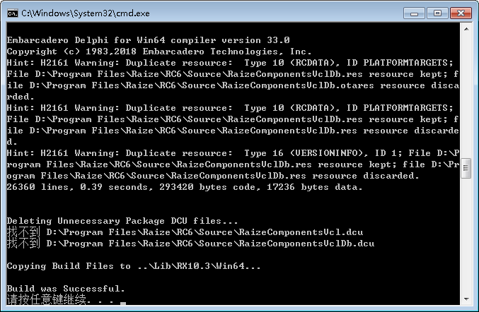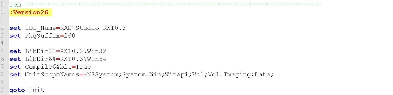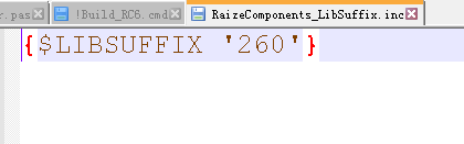 b.已设置10.3对应的260版本。(修改D:\Program Files\Raize\RC6\Source!Build_RC6.cmd和D:\Program Files\Raize\RC6\SourceRaizeComponents_LibSuffix.inc)如下图: