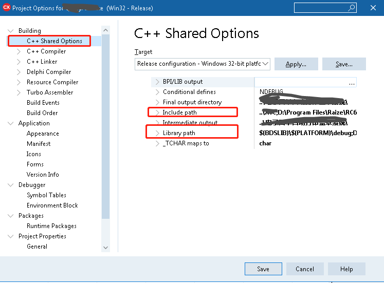 5).增加对应的Lib路径,新项目引用Raize时头文件,库文件使用时需要的路径。