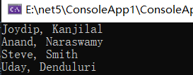 console.writeline($"{item.firstname}, {item.lastname}");