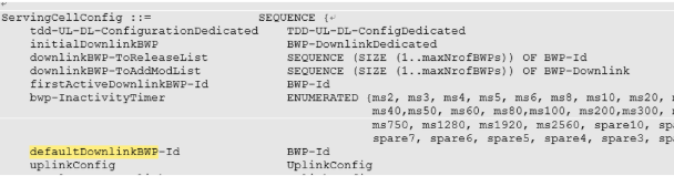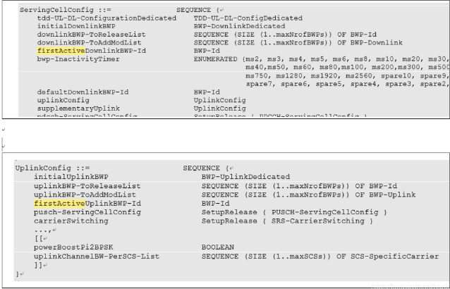 可以注意到,只有defaultDownlinkBWP-Id,而没有defaultUplinkBWP-Id,是因为这里只有下行BWP切换,上行不需要进行切换。
