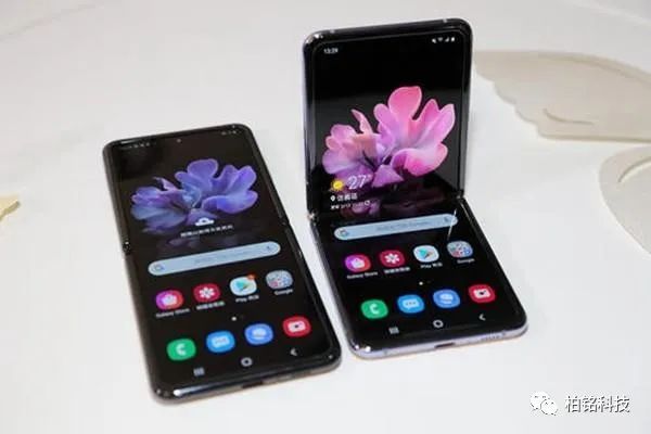 三星第二代折叠手机Galaxy Z Flip则采用了上下内向折叠的方式。第二代折叠手机Galaxy Z Flip有了重大的技术升级,其显示面板上的盖板从第一代的塑料盖板升级为玻璃盖板,耐用性大幅增强。