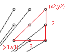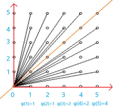 例如,点(4,2)就是不可见的,因为它与原点的连线会通过点(2,1)。