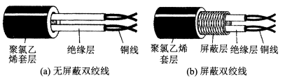 为了提高双绞线抗电磁干扰能力,在双绞线外面再加上一层用金属丝编织成的屏蔽层,构成屏蔽双绞线。