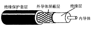 同轴电缆由内导体铜制芯线、绝缘层、网状编织的外导体屏蔽层以及保护塑料外层所组成。现在主要用在有线电视网的居民小区中。