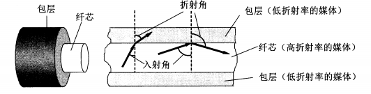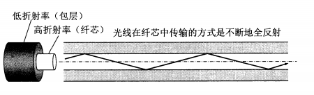 图中只画了一条线,其实可以存在多条不同角度入射的光线在一条光纤中传输。这就是多模光纤。