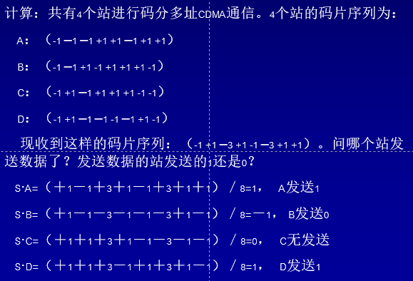 每个站被指派一个唯一的m bit码片序列。每个站分配的码