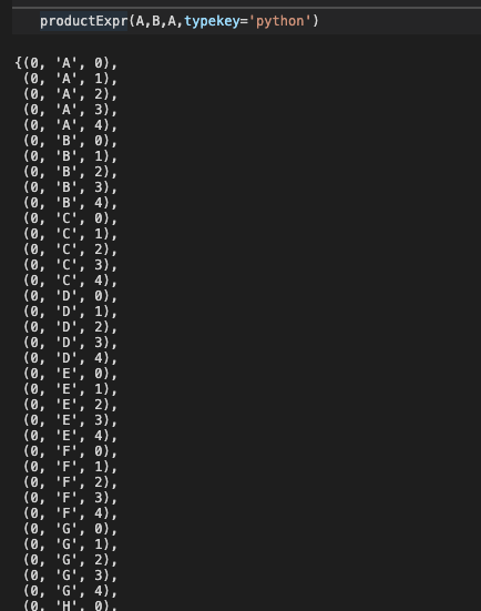 考虑到递归也好,还是别的方法,没办法在效率方面达到一个比较好的均衡,于是用推符号语句然后评估表达式的方式实现了这样的笛卡尔积