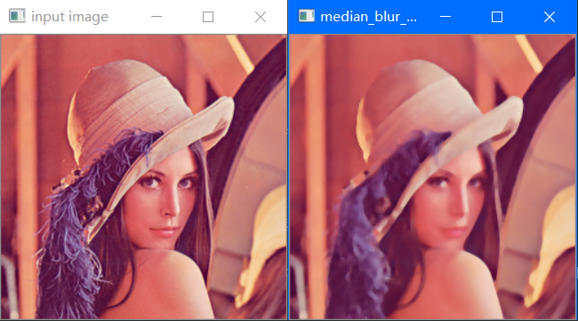 注:blur()与medianBlur()中的ksize所表示的卷积核大小的方式不同,前者为数组,后者为数字