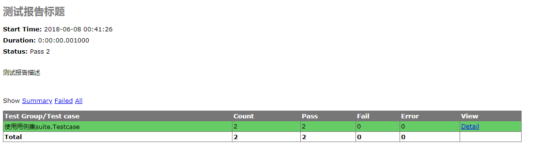 runner=HTMLTestRunner.HTMLTestRunner(f,title='测试报告标题',description='测试报告描述')#title和decription都是非必填。将用例结果写入测试报告.html