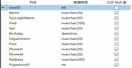 ? ? 员工信息实体:员工姓名,员工性别,系统登陆名,系统登陆密码,所在部门,员工职位,