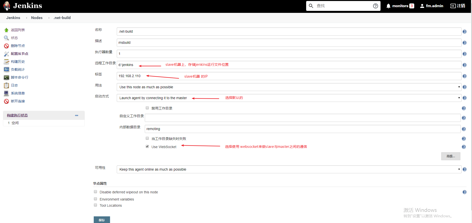 - 搭建jenkins服务器以及配置一台.net编译的slave客户端