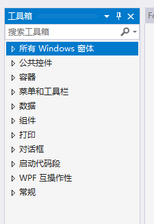 ,左边会有个工具栏。展开所有 windows 窗体,下面有控件。