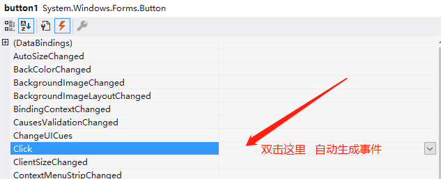 ?打开属性,切换到闪电,下方有很多事件,找到click 双击后面,自动生成点击事件并跳转到click方法