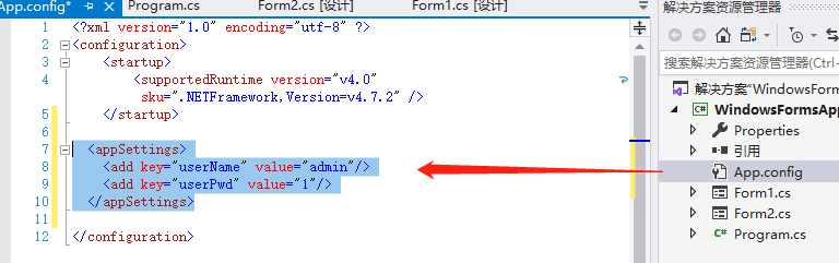 ①在app.config中添加