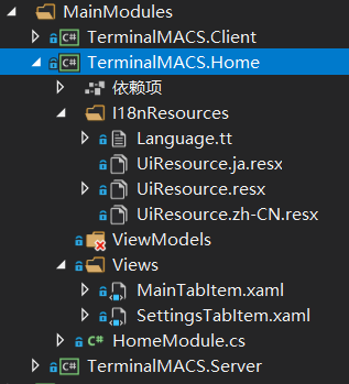 基于上面的要求,我尝试在各模块(module)中也定义了语言文件(xaml),主窗体切换语言时,加载模块语言文件老是提示不存在对应的资源字典文件,我恼火呀,后面还是参考“accelerider.windows”国际化的方式,使用资源文件实现本地化和国际化了,不纠结xaml的方式了,唉。