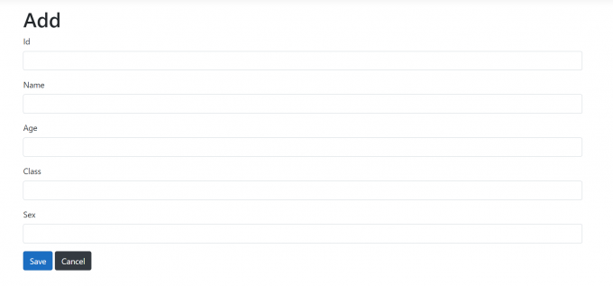 add页面使用一个form表单作为容器,里面的文本框使用asp-for跟model的student属性建立联系。