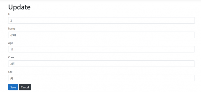 new student{ id=2, name="小明", age=11, class="2班", sex="男"},