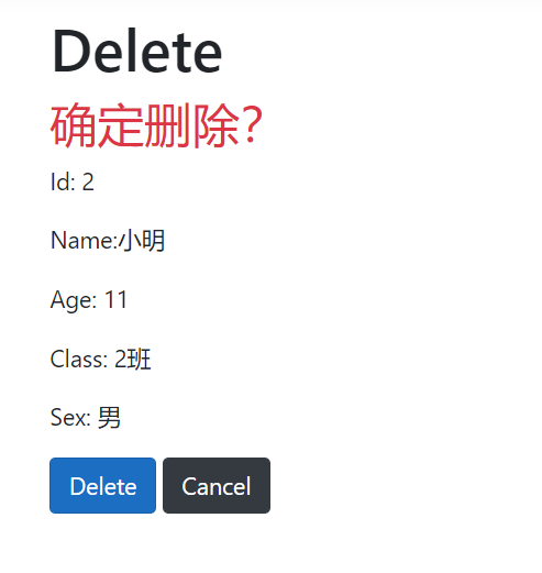 删除页面跟前面一样没什么好多讲的了,使用前面的知识点轻松就能实现。
