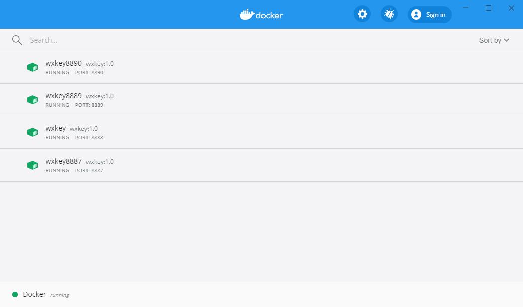 六、依次启动多个此docker的实例,本次测试启用了四个实例。