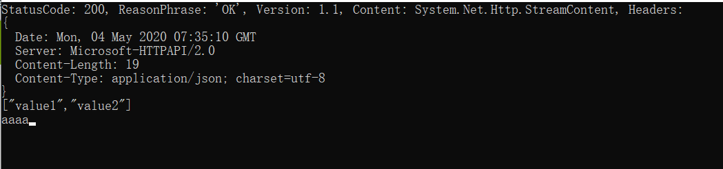 statuscode: 200, reasonphrase: 'ok', version: 1.1, content: system.net.http.streamcontent, headers:
