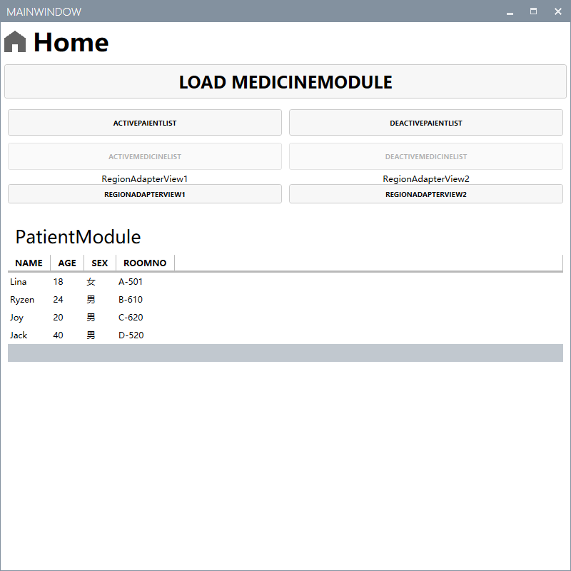 - 当进行模块化时,加载完模块才会去注入视图到区域(可参考medicinemodule视图加载顺序)