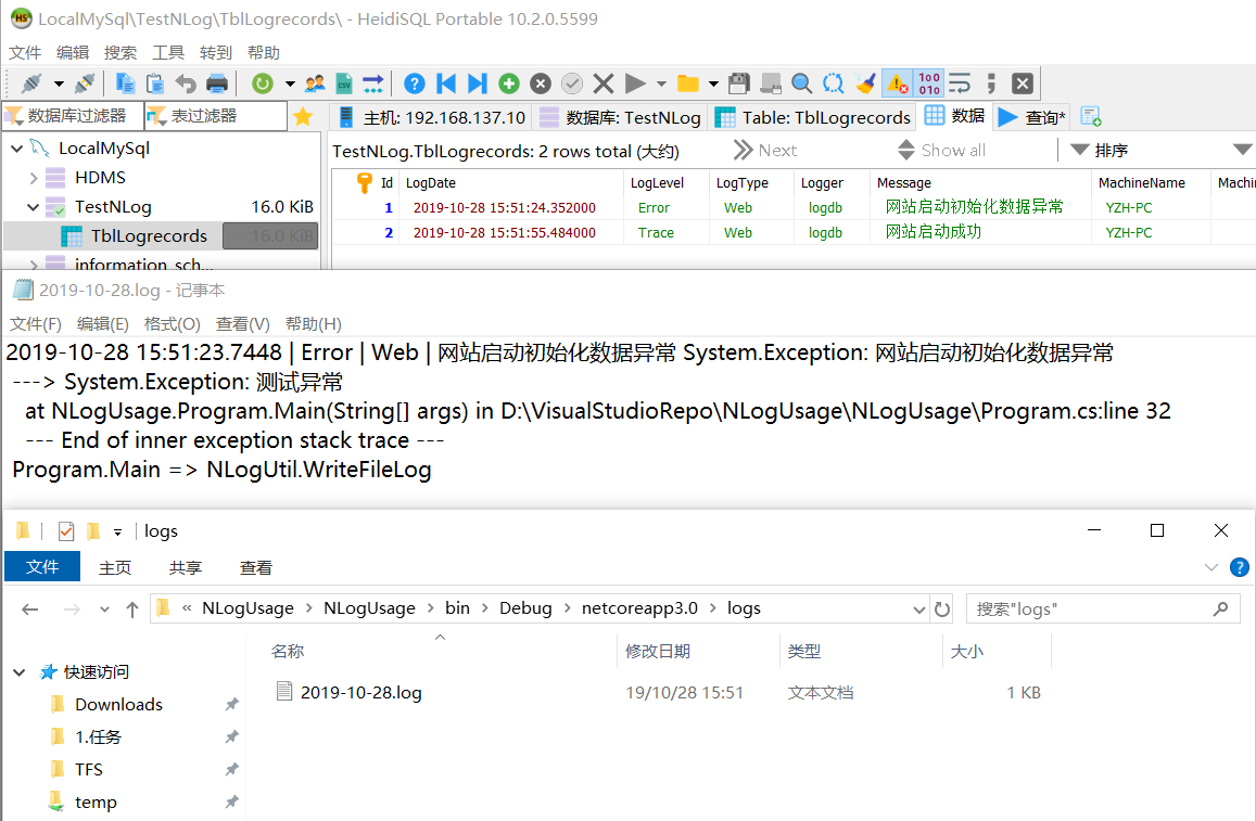 //使用nlog写到本地日志文件(万一数据库没创建/连接成功)