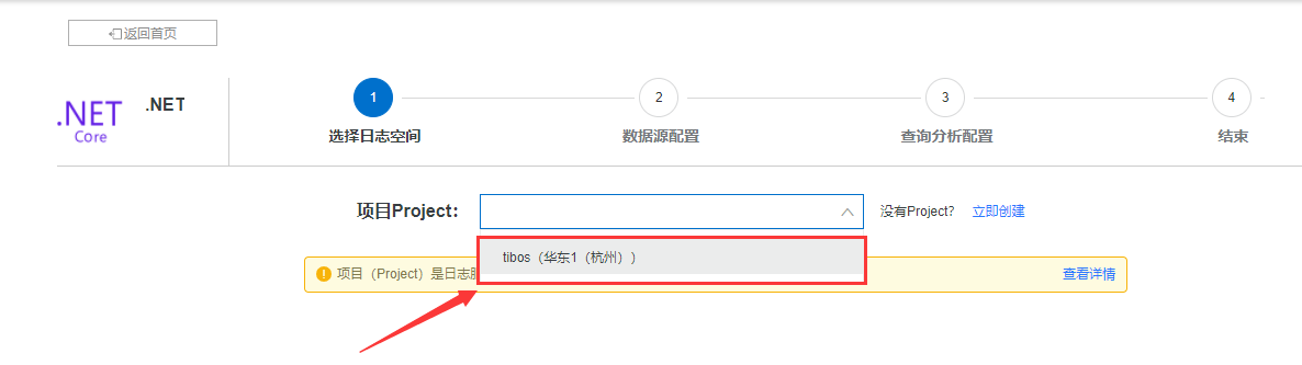 选择项目名称,没有项目的可以去创建一个,项目名称后面会用到,如果你有购买阿里云ECS,项目区域最好选择跟ECS同一个区域(每个区域的地址不一样,同一个区域可以选择内网通讯,速度更快),如果没有,就随便选个区域,我这里选择的是杭州