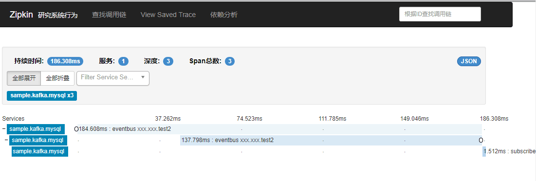 基于这些对外的事件数据,我们可以来对接APM,下面这个是我对接的 ZipKin 的一个图: