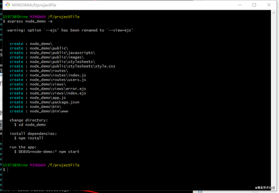 express创建项目默认为jade模板引擎,若使用其他引擎,使用命令切换