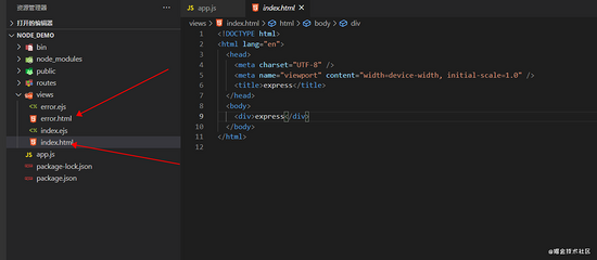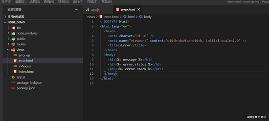 然后还需要将在views新建一个index.html 与error.html 内容如下 index.html