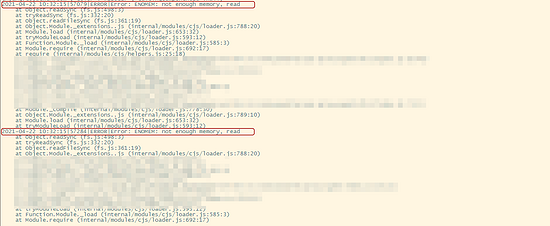 另外一个现象就是现有的 node 服务会打印一些日志,翻了一些网上的 nodejs 内存泄漏的文章,有看到 console 日志输出导致的泄漏的情况,因此注释掉 console 之后继续观察内存占用,结果仍旧是内存高占用。