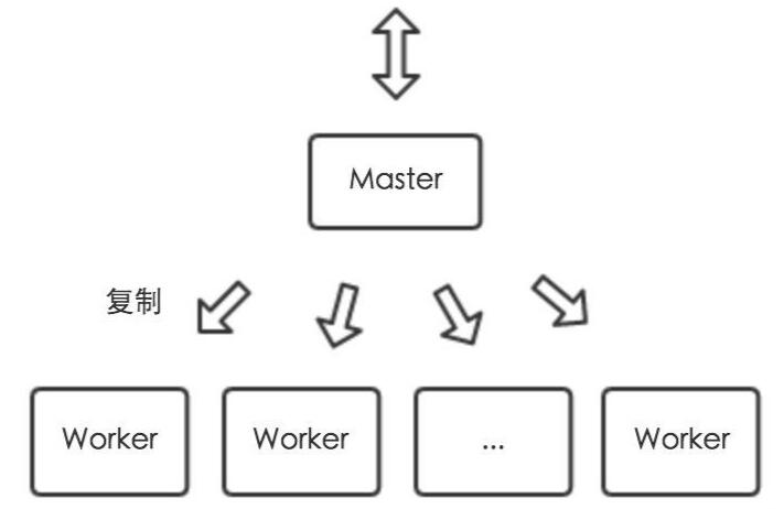 这样的解决方案就是*nix系统上最经典的master-worker模式,又称为主从模式。