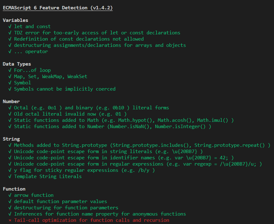 我们可以查看一下node环境下支持的es6语法