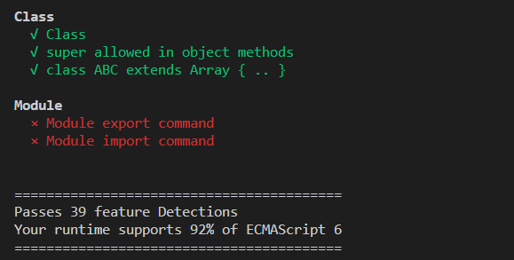 安装完成后就可以通过执行es-checker命令查看node的支持率及详情